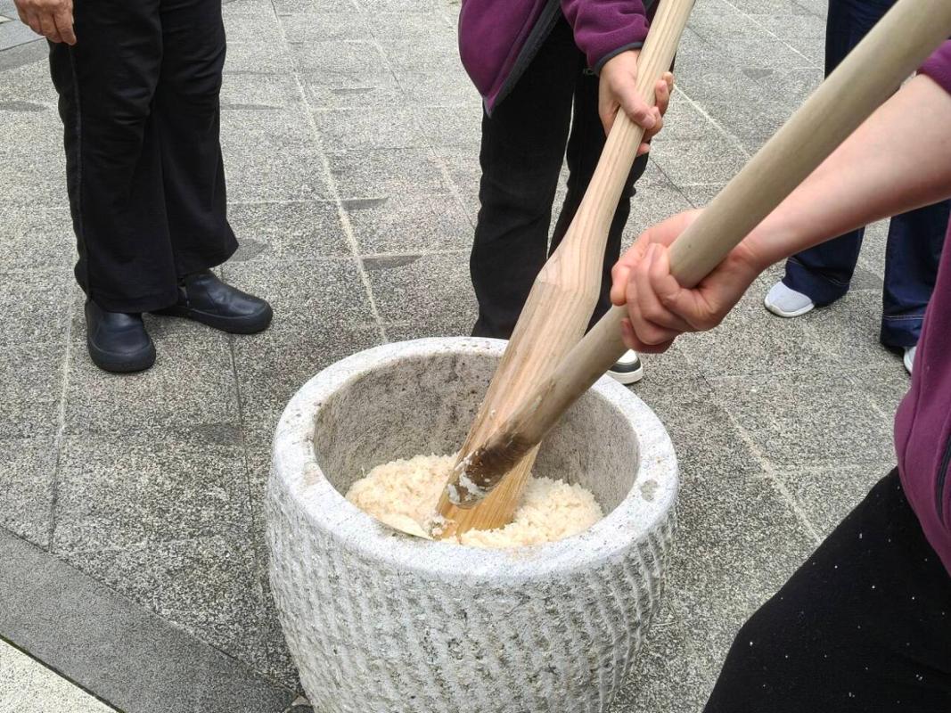 活动当天,康葆养老院的庭院里暖意融融。养老院工作人员提前备好新鲜糯米、传统石臼与木槌,在工作人员的指导下开启了打糍粑的忙碌进程。木槌在石臼中交替起落,蒸熟的糯米逐渐变得软糯黏密,空气中弥漫着浓郁的米香。老人们围站在旁,现场欢声笑语不断,俨然一幅温馨的“祖孙同堂”画卷。