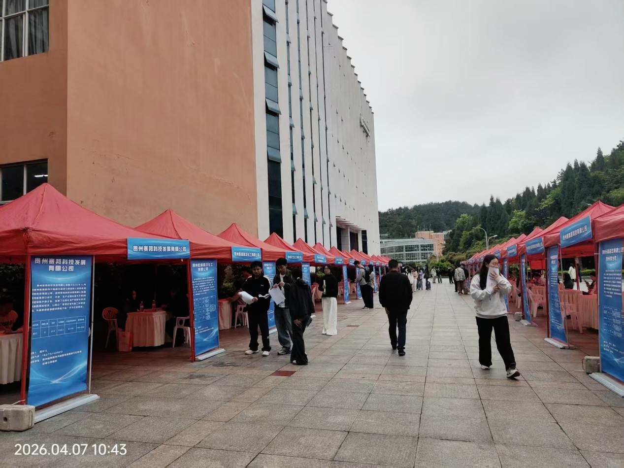 本网讯 为扎实推进高校毕业生就业创业工作,搭建校地精准对接桥梁,4月7日,由开阳县人力资源和社会保障局、贵州师范学院商学院联合主办的“职引黔程·点亮未来”开阳县—贵州师范学院高校毕业生公共就业服务系列活动专场招聘会,在贵州师范学院凤凰广场成功举办。本次活动聚焦毕业生就业需求与地方企业用工痛点,以“送岗位、送政策、送服务”为核心,为青年学子求职就业、企业引才育才、地方招才引智搭建了高效平台。