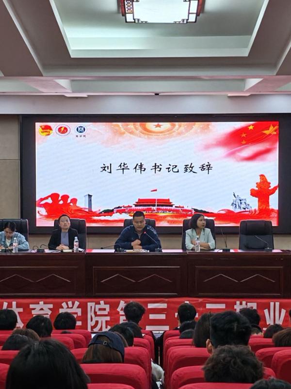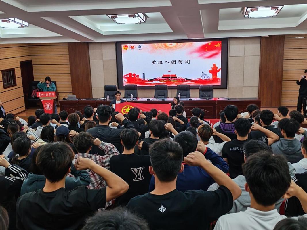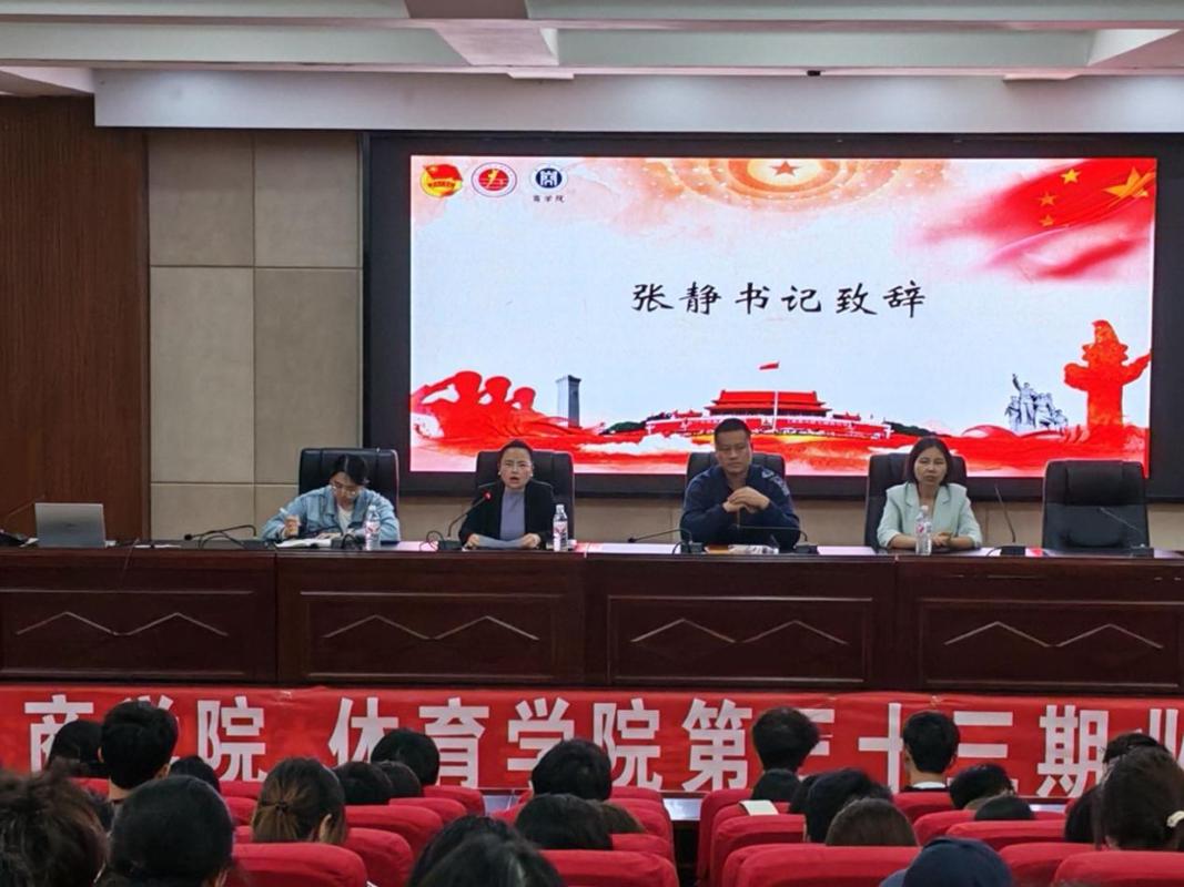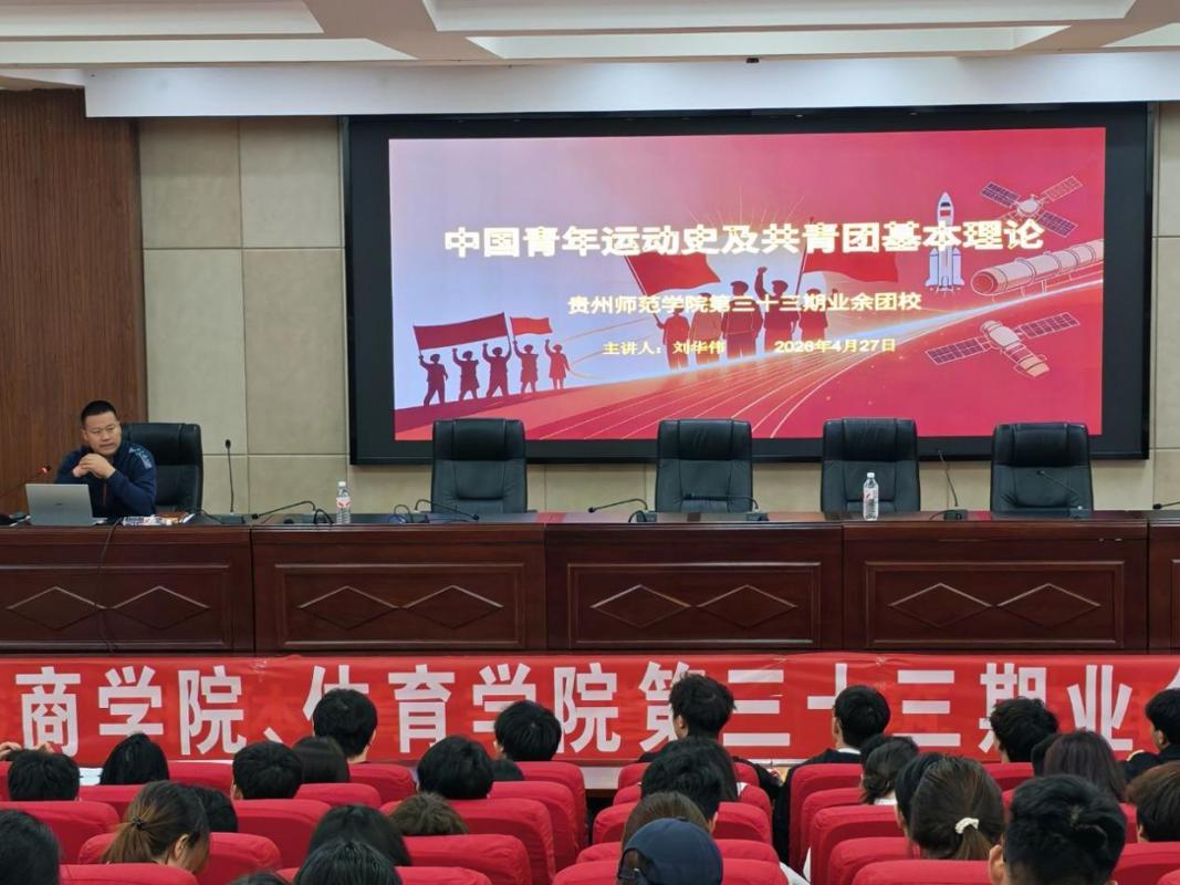 本网讯 为传承红色基因,强化青年思想引领,凝聚新时代青年奋进力量,4月27日,贵州师范学院商学院与体育学院在道德讲堂联合举办第三十三期业余团校培训开班仪式暨团课专题一培训。体育学院党委副书记刘华伟、商学院党委副书记张静、体育学院团委指导老师杨友娣、商学院团委书记寇燕出席仪式,两院第三十三期业余团校全体学员参加此次活动。
