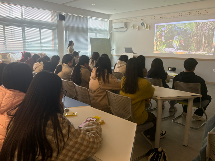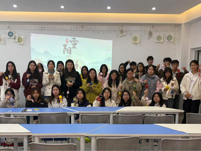 光影溯古,味蕾承情。活动在重阳由来的视频中缓缓启幕,带领参与者步入时光长廊。一段精心制作的视频,以有趣的镜头语言,追溯了重阳节登高怀远、佩茱萸、赏菊饮酒的悠久历史与深厚人文内涵。光影流转间,一块块象征“步步高升”的重阳糕清甜软糯,亦让同学们亲身体会了重阳之韵。视觉与味觉的双重体验,让古老节俗从文字走入现实,变得可感可亲。