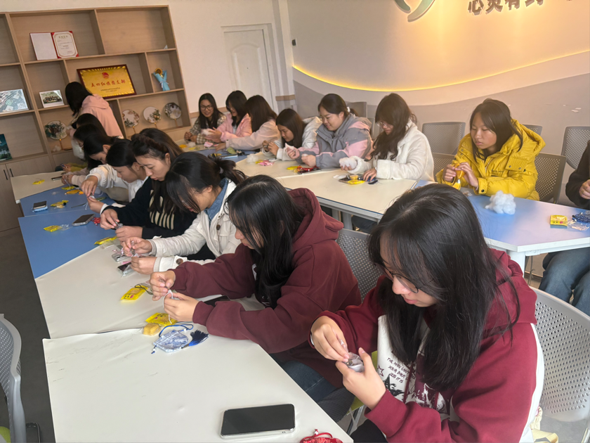 指间经纬,囊纳秋香。活动的第三环节“巧手制囊”将现场氛围推向高潮。在工作人员的悉心指导下,同学们将一份份寓意健康平安的药材包裹进精美的香囊之中。一针一线,缝合的是对传统手工艺的体验;一香一韵,封存的是对亲友师长的深深祝福。顷刻间,一个个独具匠心、香气馥郁的香囊便在指尖诞生,秋日的情思也随之被妥帖珍藏。