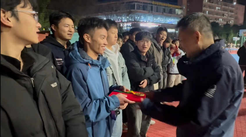 决赛落幕,荣耀时刻如期而至。闭幕式颁奖环节中,谢坚老师受邀为本次“篮芯杯”获奖队伍颁奖。这不仅是对他们竞技水平的肯定,更是对他们不懈努力的嘉奖。颁奖仪式后,全体人员一同合影留念,镜头定格下这一充满荣光与感动的瞬间,为本次“篮芯杯”篮球比赛画上了圆满的句号。