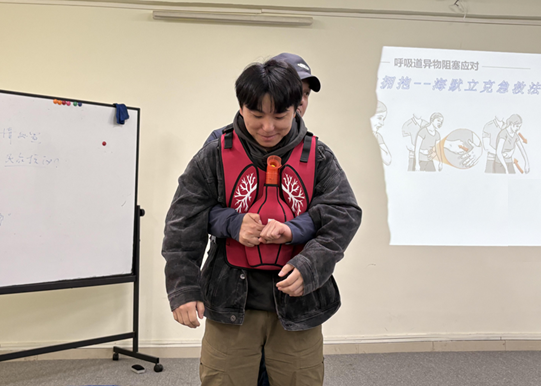此次培训既是商学院2025教学节实验室安全教育的一部分,也是《应急管理》课程实践教学的重要环节,旨在将应急管理理论知识与实操技能紧密结合,强化学生“自救互救”的安全意识,提升应对突发事件的能力。参加培训的学生黄显斌表示:“今天的培训内容实用、指导性强,所学技能在日常生活和未来工作中都极具应用价值。我们不仅要把所学知识运用到实际中,同时还要向身边的人普及应急救援常识,共同筑牢安全防护网。”