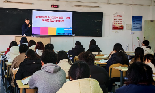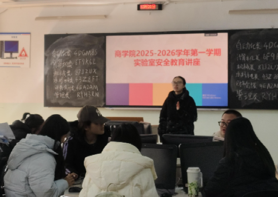 本网讯 11月24日,商学院实验室主任潘闽和实验室管理老师专任教师陈行分别为2025级经济学一班、二班、2025级财务管理班和2025级金融科技班的同学们开展了开展了商学院2025-2026学年第一学期的实验室安全教育讲座。