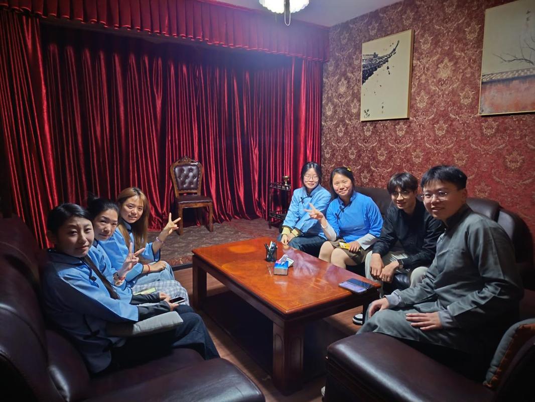 随后,参与人员分成三个小组,分别参与红色党建专题剧本《兵临城下》、《末班车》、《孤城》,进行情景课堂研学。在《兵临城下》剧本研学现场,同学们化身抗战时期的革命志士,在“家国大义与个人情感”的抉择中感受先辈们的坚定信仰。同学们全情投入角色,深受触动,难以抑制内心情绪,纷纷流下眼泪,泪水既是对历史精神的共情,也是对“国家兴亡,匹夫有责”信念的深刻共鸣。《末班车》小组则通过沉浸式剧情,体验地下工作者在复杂环境中的机智与勇敢,深刻体会到“隐蔽战线”斗争的艰辛;《孤城》小组的同学们在角色互动中,重温了革命年代军民同心、共克时艰的峥嵘岁月。研学过程中,大家全情投入,不仅精准把握角色心理,更在剧情推进中主动思考历史事件背后的时代意义,不时围绕“如何传承红色基因”“青年一代的责任担当”等话题展开热烈讨论。