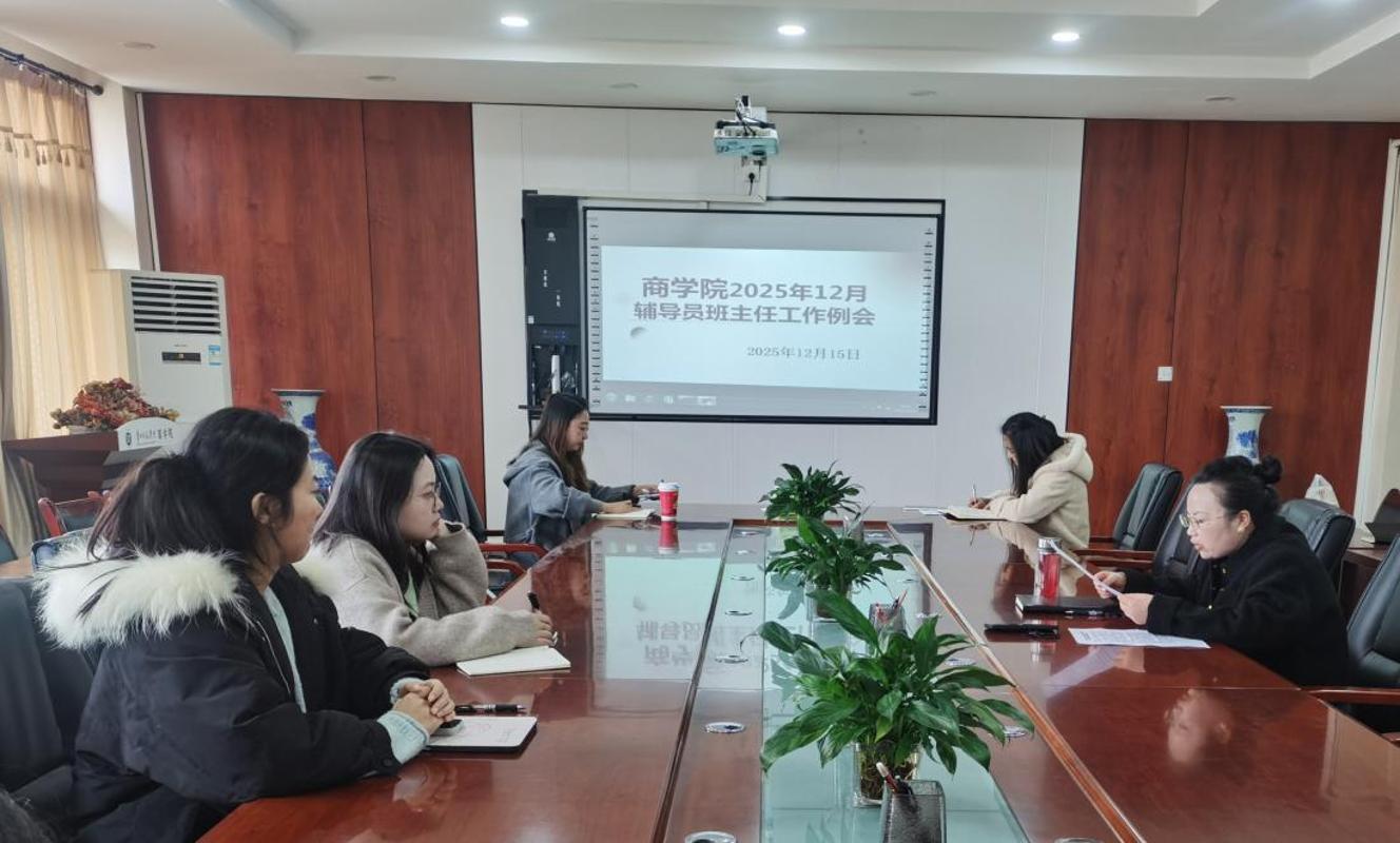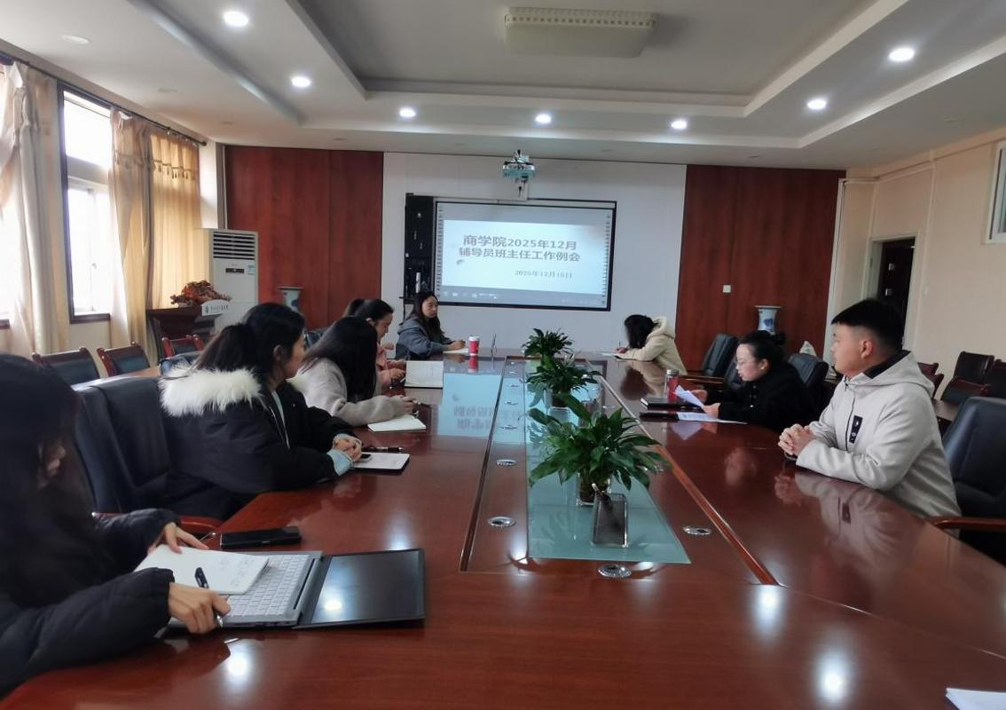 本网讯 12月15日,商学院于会议室召开12月辅导员班主任工作例会,围绕校园安全防控与期末阶段育人重点任务,系统部署近期学生管理服务工作。学院党委副书记张静出席会议并主持,全体辅导员、班主任参加会议。
