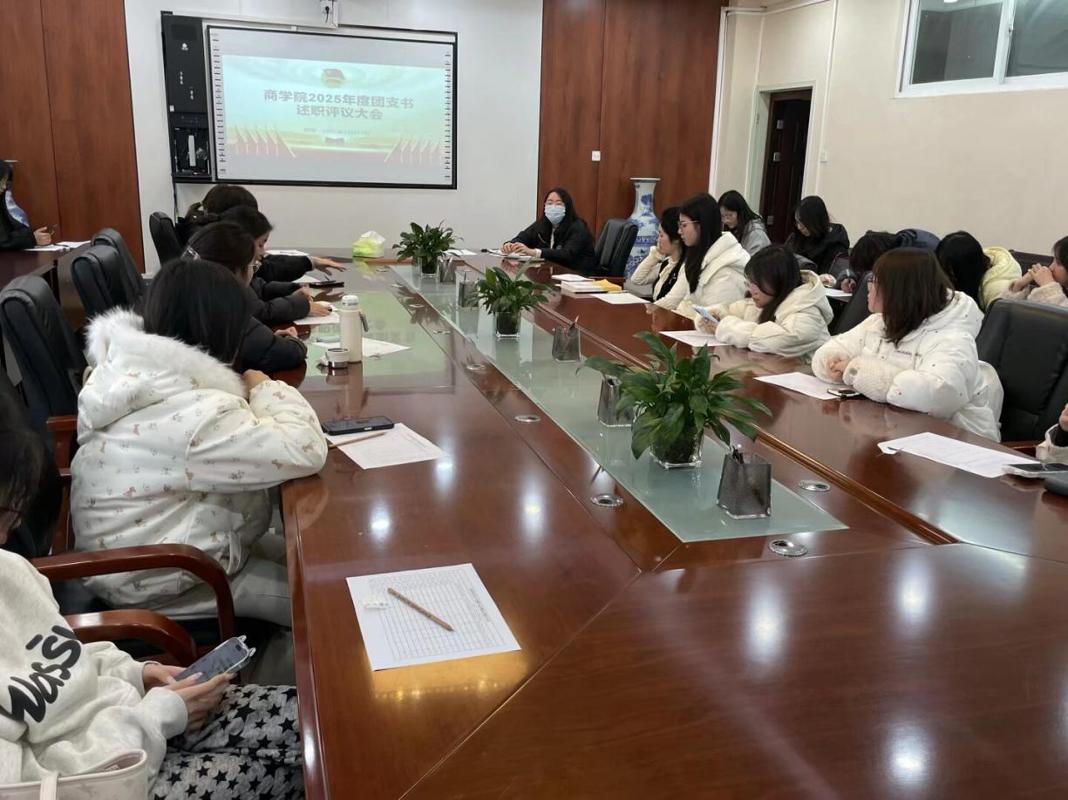 本网讯 为全面总结2025年度团支部工作成效,压实团支书责任担当,推动基层团组织建设提质增效,我院于12月17日顺利召开2025年度团支书述职评议大会。本次会议商学院团委书记寇燕、各班团支书及组织部全体成员共同参与。