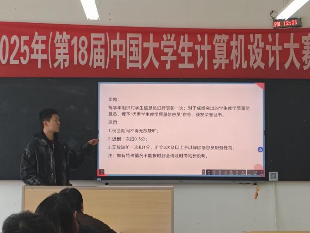 蔡瑞晨详细讲解了信息员线上反馈的操作流程,并对规范填写反馈表提出了明确要求。此外,他还结合2025年教学反馈情况,让信息员对课程作业的频度与数量进行重点关注。会议再次明确了新学期信息员反馈工作的流程与制度。