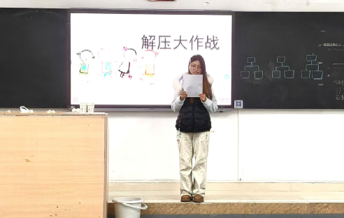 本网讯 为精准服务学生成长过程中的现实需求,积极探索学生心理健康教育与综合素质培养的创新模式。我院团委学生会与心语健康工作坊于11月25日晚在明德楼518举办“解压大作战——青春不设限,一起‘趣’发疯!”主题活动。本次活动旨在通过系列创意互动,帮助学生有效缓解学业压力,提升团队凝聚力与创新思维。